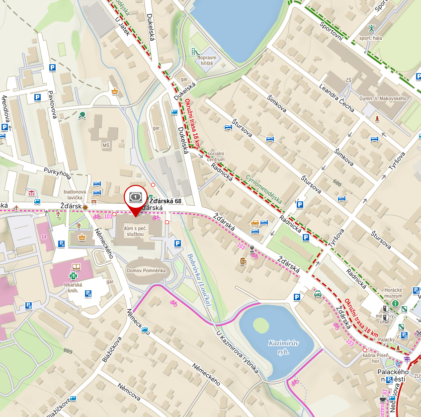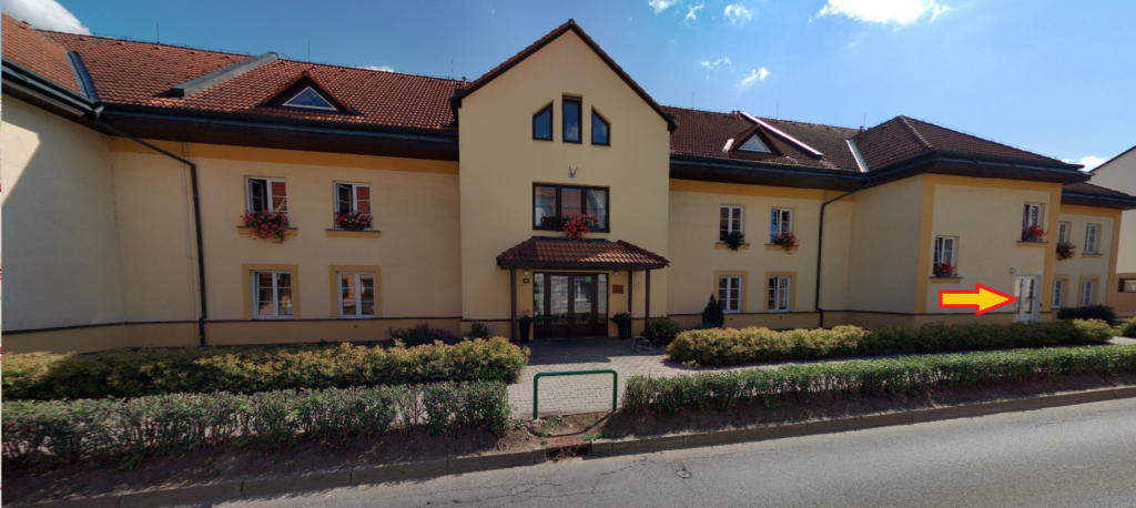Žďárská 68 (dům s pečovatelskou službou, vstup úplně napravo – zvonek na dveřích)
